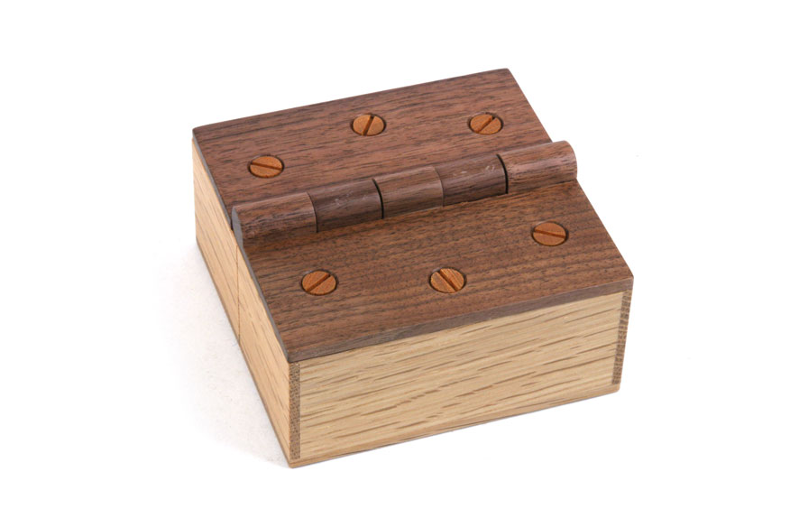 Designer/Maker: Tatsuo Miyamoto Tatsuo Miyamoto Size: 10x10x5cm Notes: Find two secret compartments. Significant light marks on parts of the hinge (see extra photo). This was an 2007 Karakuri Club Christmas present. Includes original box and copy of solution sheet. More information: https://karakuri.gr.jp/en/products/my-10/ |
