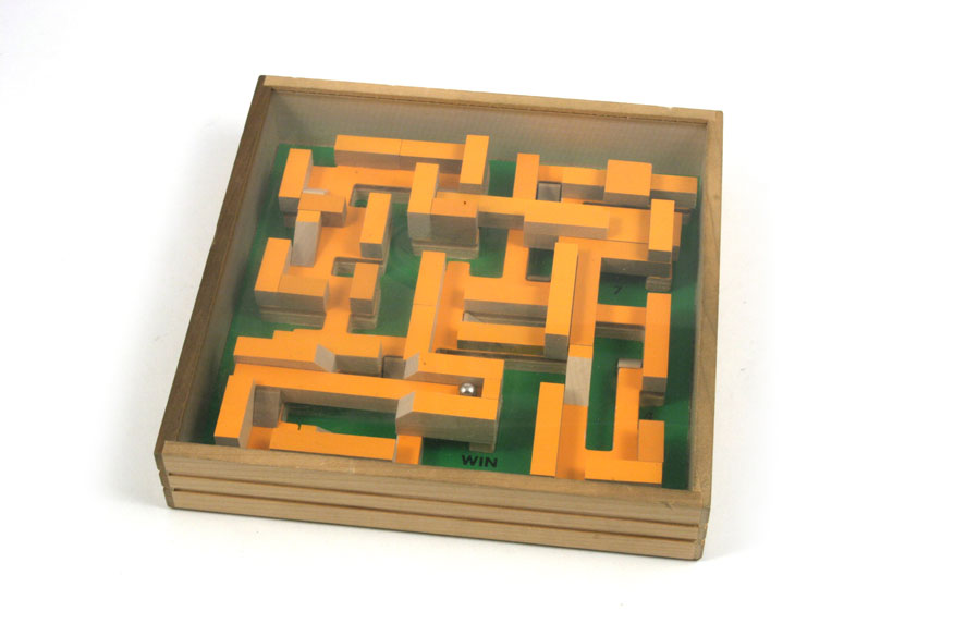 Maker: Wada Size: 18x18x3cm Notes: Also known as Labyrinth Town (G246). Guide the ball from START to WIN, passing 14 numbered obstacles. Wood with plastic cover. Includes original, partially ripped, box. Source: Dick Hess Collection |